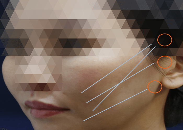 실리프팅 부작용 현상으로 얼굴이 '사마귀상'이 되는 경우가 간혹 있다고 합니다. 이유는 실리프팅이 향하는 방향이 광대를 지나서 관자놀이, 귀쪽으로 가기 때문인데요.